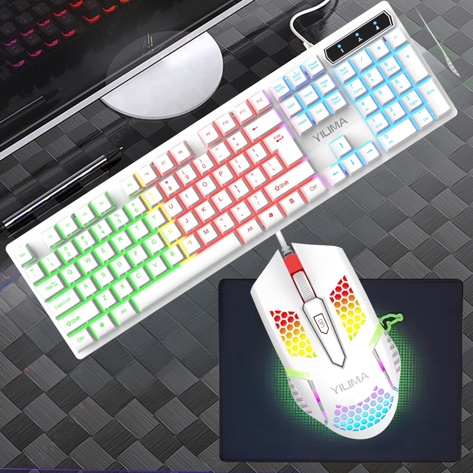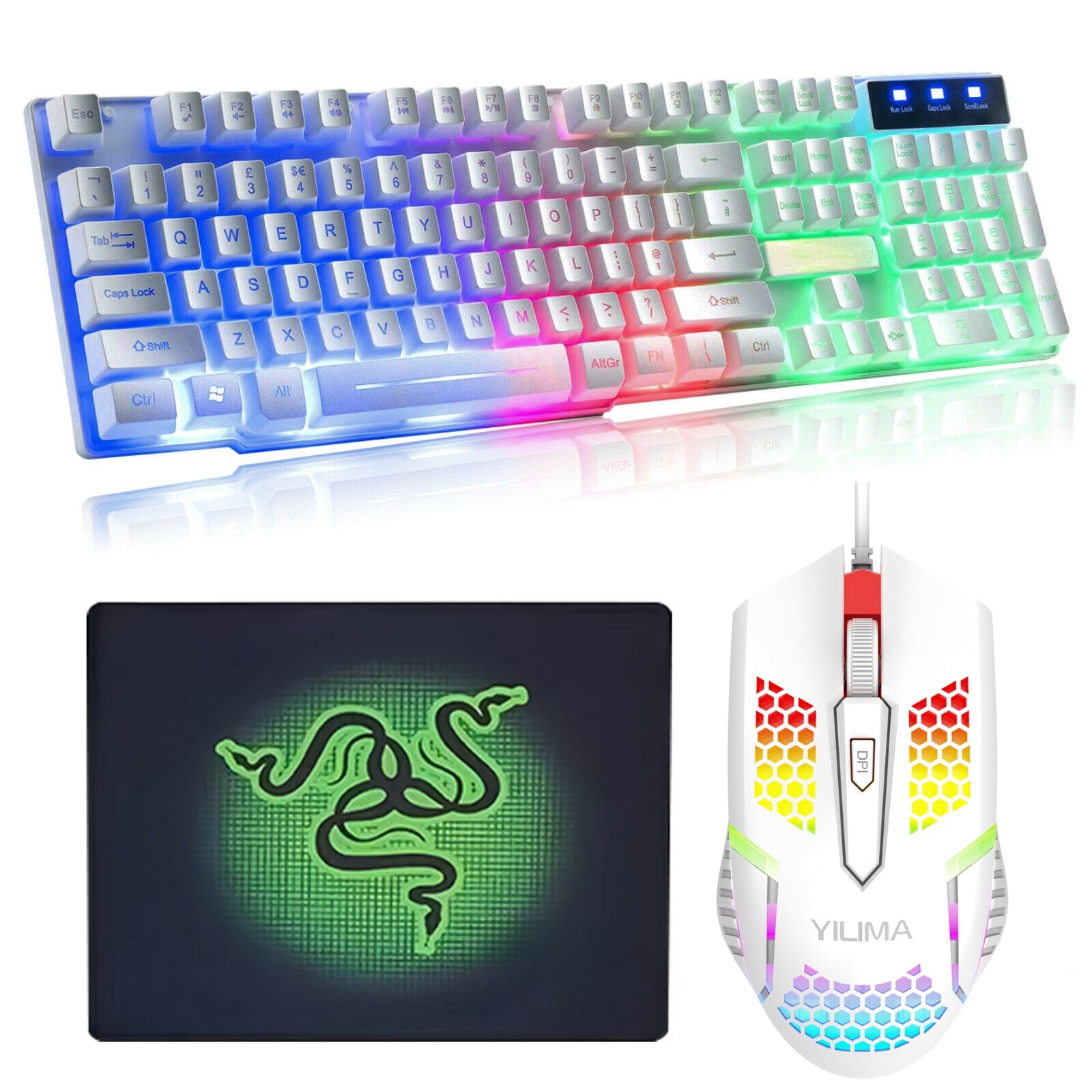 Elevate Your Gaming Setup! 🎮 This Rainbow Gaming Keyboard, Mouse, and Mouse Pad Combo is perfect for casual and professional gamers alike. Compatible with a wide range of operating systems, it brings a dynamic and colourful gaming experience to your desktop.